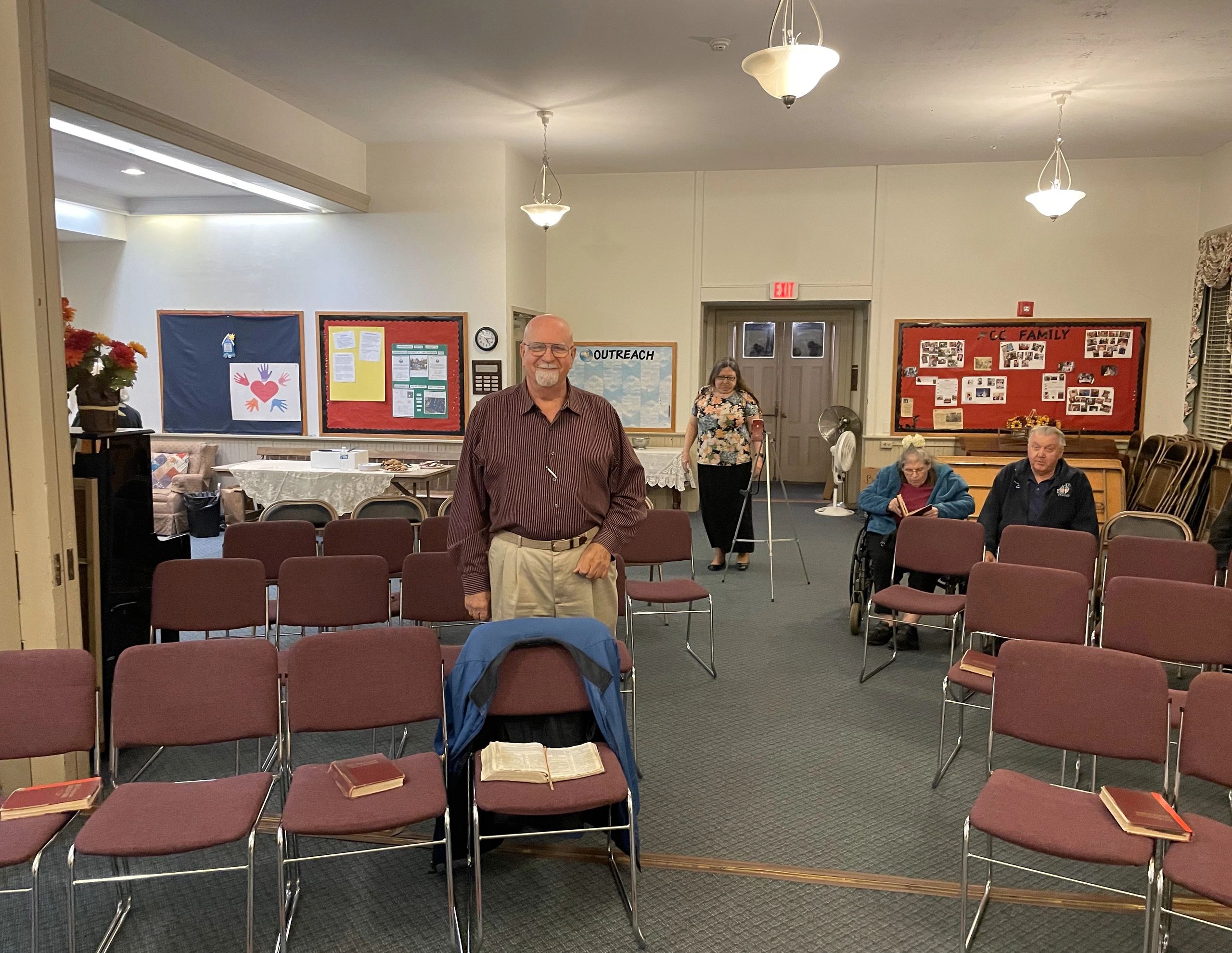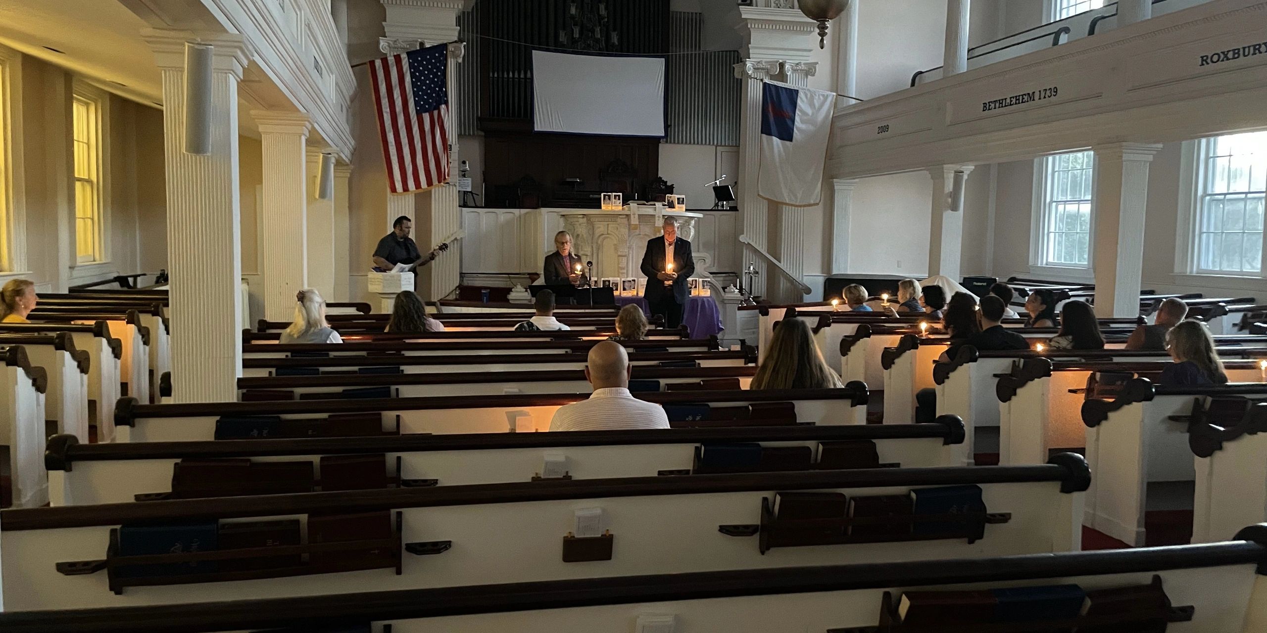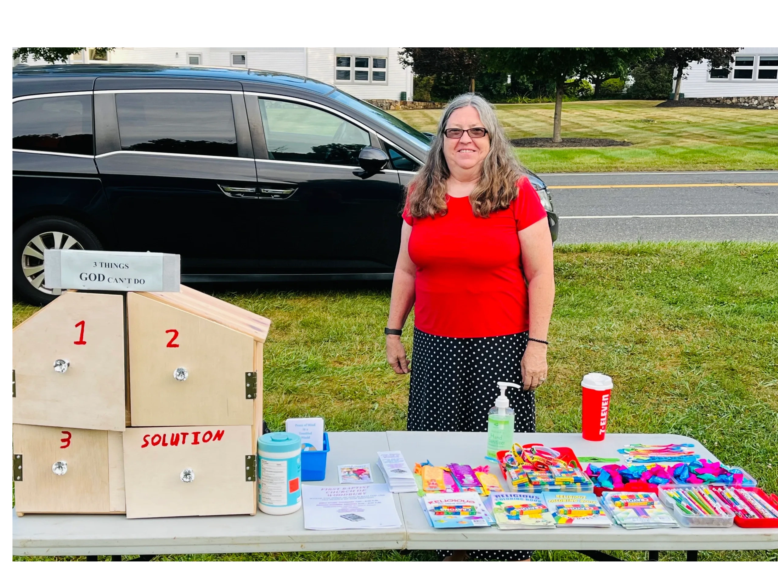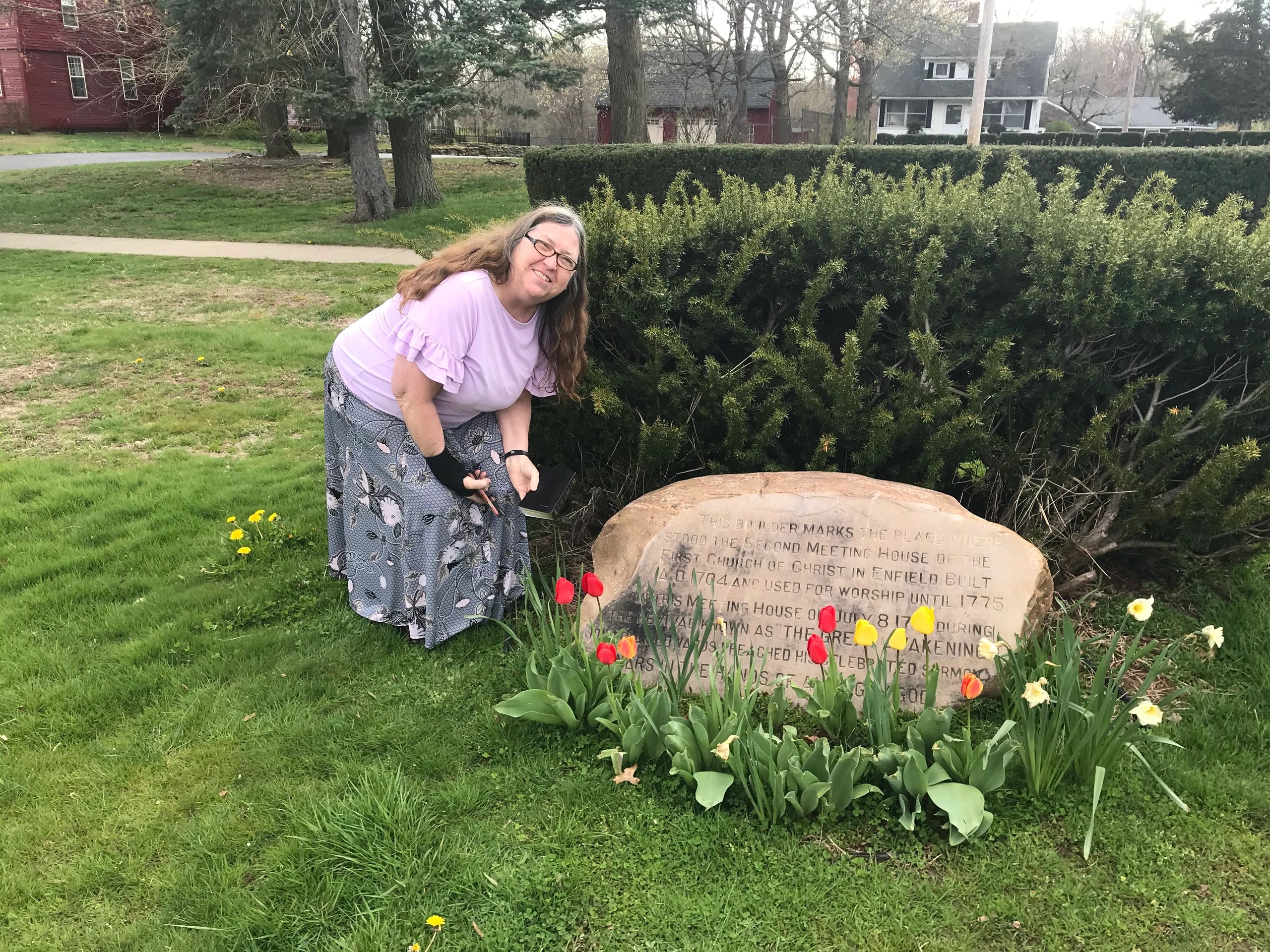 Sister Marilyn at the spot where Jonathan Edwards preached "Sinner in the Hands of an Angry God"
